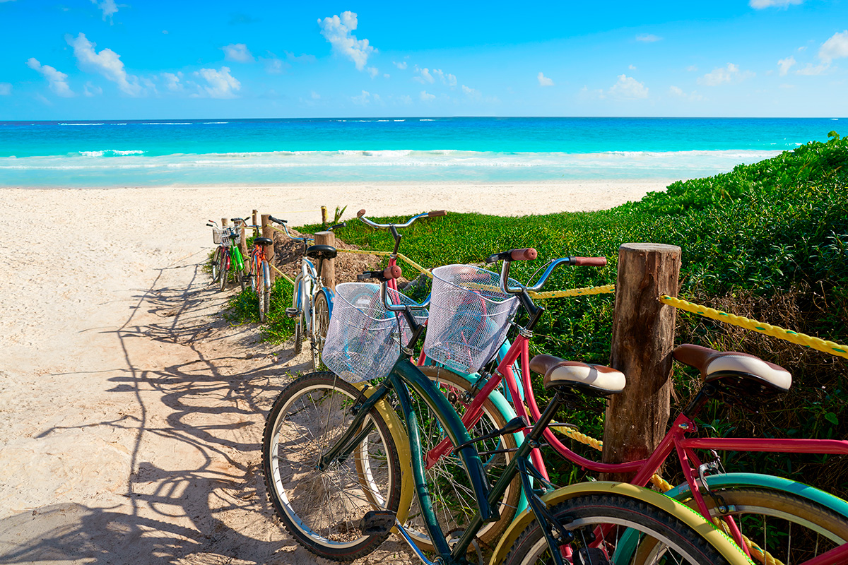 ¿Qué tal un paseo en bicicleta que te interne en la selva para llevarte a conocer la Zona Arqueológica Maya? donde encontrarás vestigios sorprendentes frente al mar, incluyendo el Templo de los Frescos, que tiene estatuillas espectaculares del ‘Dios Buceador’. Las ruinas de Tulum sin duda deben ser tu primera parada.